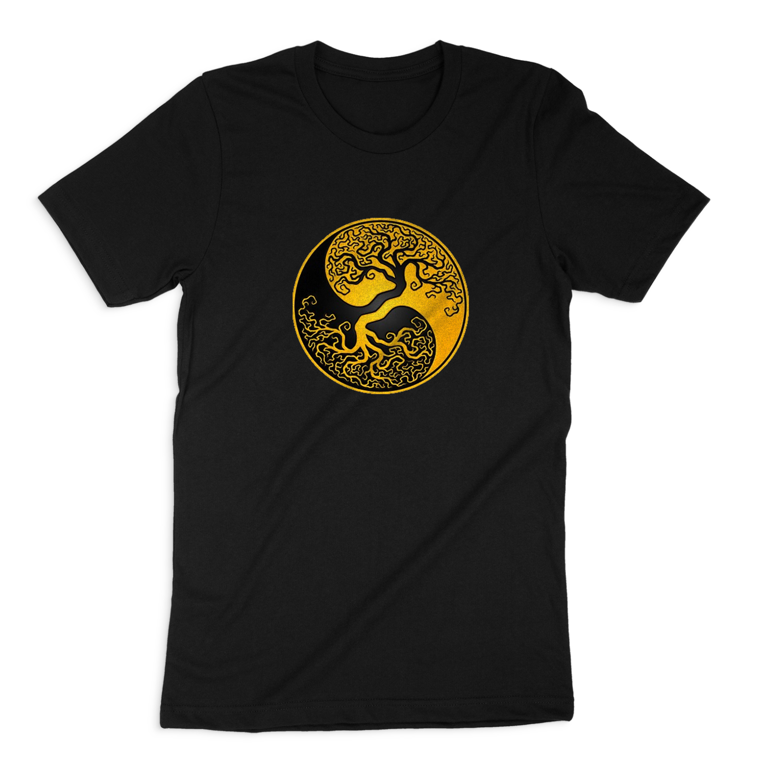 YELLOW AND BLACK TREE OF LIFE YING YONG SHORT SLEEVE T-SHIRT